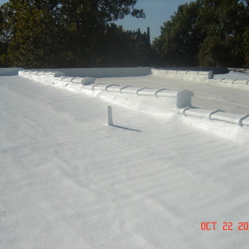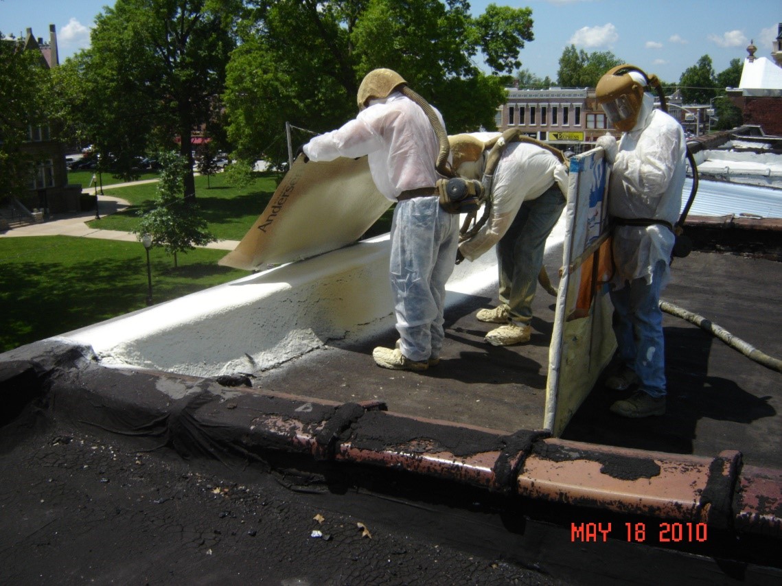 Spray Polyurethane Foam is a seamless barrier system that insulates and waterproofs your roof to save energy costs. This option for almost flat & low slope roofs combines the excellent adherence of polyurethane foam to the substrate providing excellent R-value for the roof surface and a good substrate for the Conklin’s Coatings. Once coated, you will have an EXTREMELY energy efficient seamless roof system that is SUPERIORLY adhered. Low areas can be easily built up to re-direct water flow and create positive drainage. This system has great energy savings turning your roofing expense into a long-term investment for your building.
